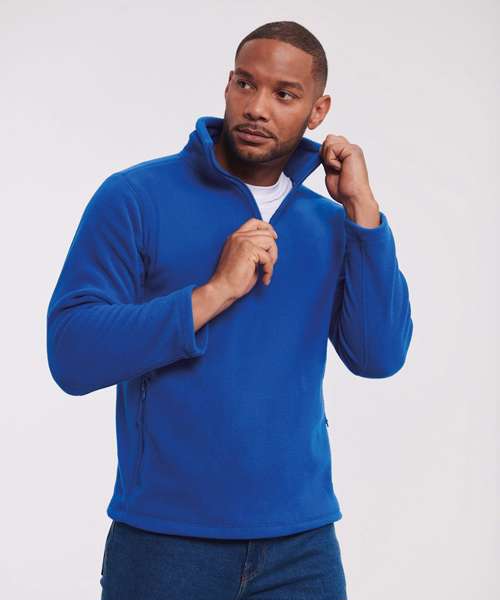 The compact fleece material, the smooth surface and the panelled construction allow for excellent fit and a more modern look than fleeces generally do. Cadet collar. 1/4 zip. Side pockets with reversed zips and inner mesh lining. Cord pulls on all zips. Bungee cord in hem.