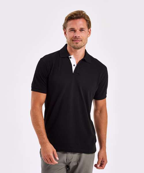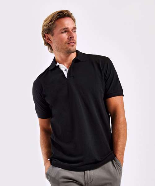 Classic fit polo with contrast colour detail on the placket and under the collar. 2 buttons to the placket. Short sleeves. Side vents. Knitted collar and cuffs. Machine washable.