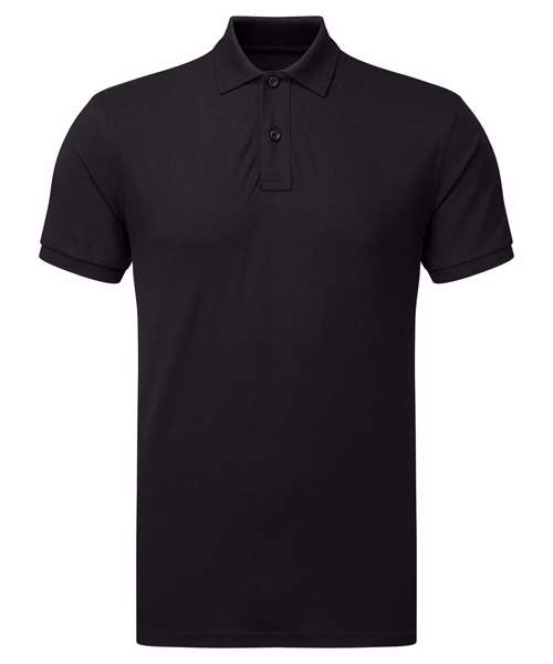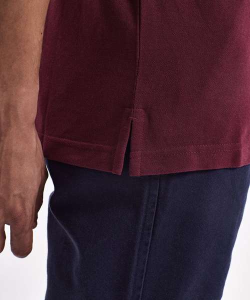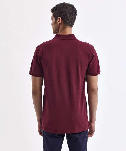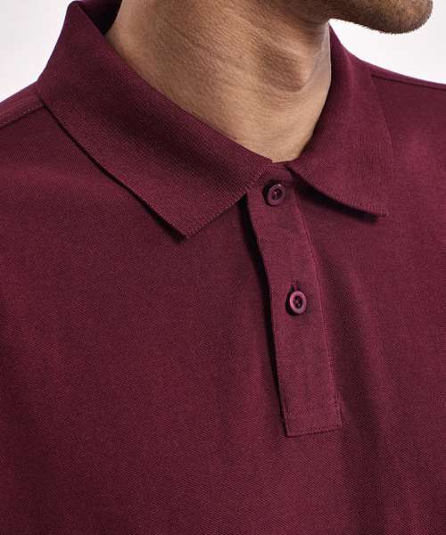 Classic fit polo, ribbed knit collar and sleeve cuffs. Twin needle stitching on hem. Two self coloured buttons on placket.
