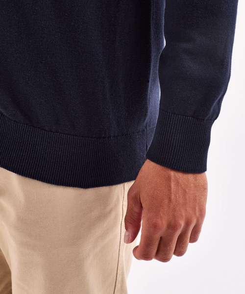 Embrace a modern silhouette with the cotton blend 1/4 zip sweater. A perfect piece for between seasons layering.