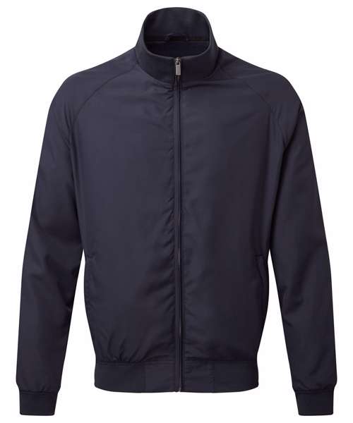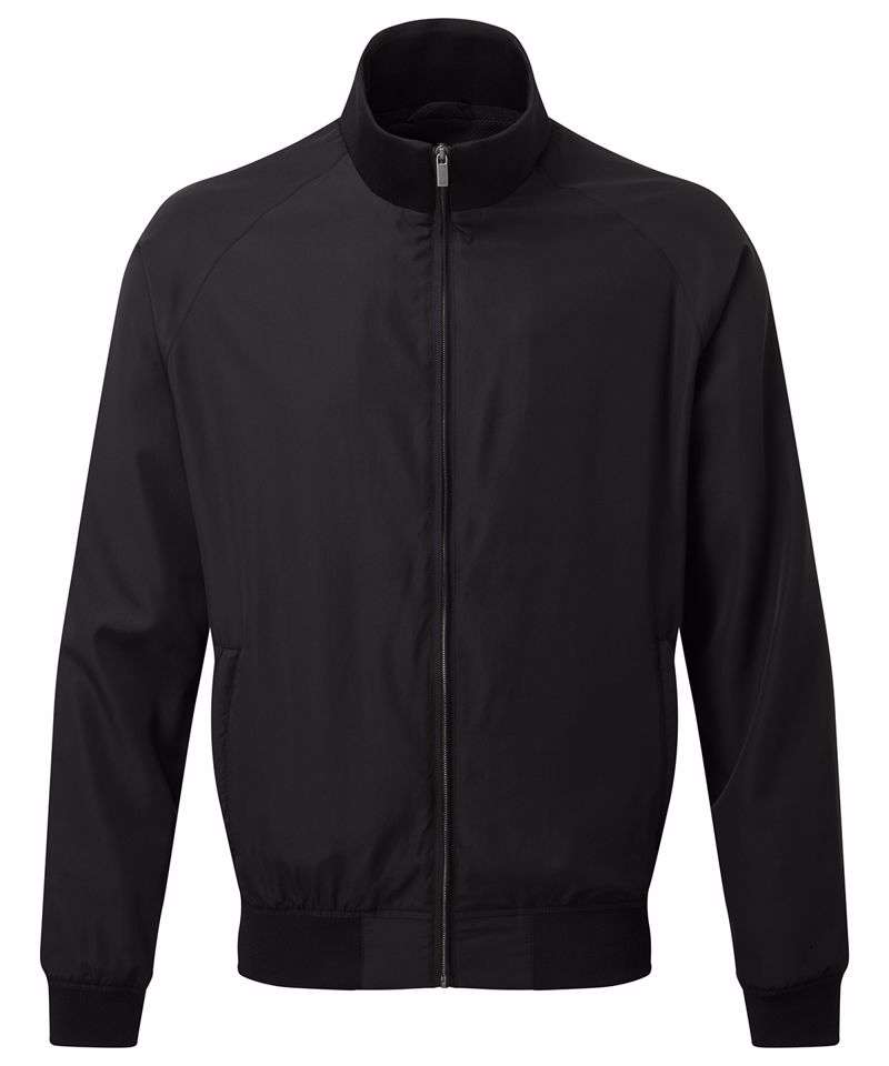 Classic fit Harrington style jacket. Elasticated ribbed knit collar, cuffs and hem. Finishes just beneath the waistline. Full-zip through style. Two side slit pockets. Embroidery access on the lower back and left hand side of chest.