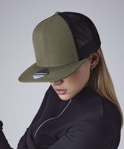 TearAway label for ease of rebranding. 6-panel design. Structured front panels. Flat peak. Authentic peak sticker. Retro style snapback size adjuster. REACH certified. BSCI certified.