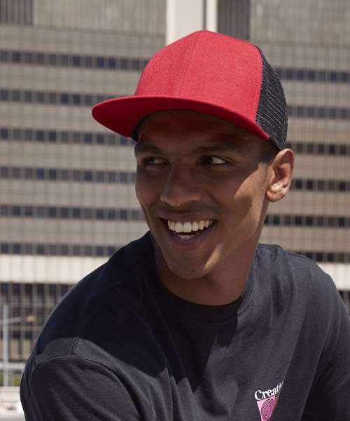 100% Polyester twill front panel and peak. Mesh rear panels: 100% Polyester