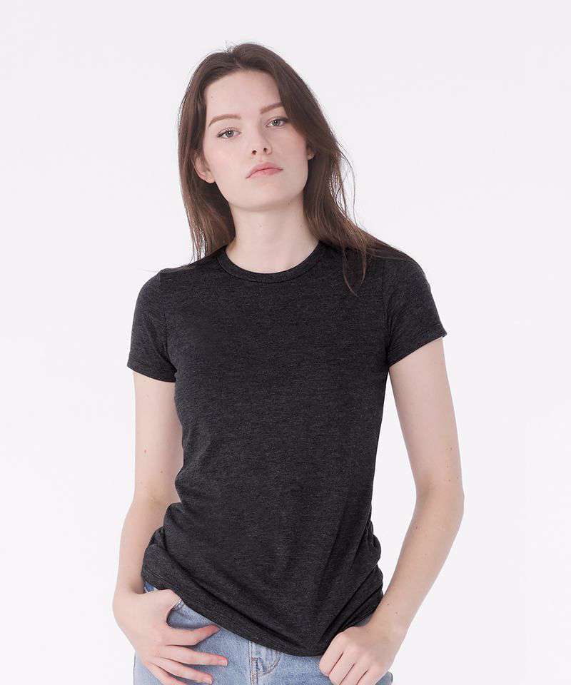 Her go-to tee fits like a well-loved favourite, featuring a slim feminine fit, crew neck, short sleeves and superior combed and ringspun cotton that acts as the best blank canvas for printing. Offered in a variety of solid and heather cvc colours.