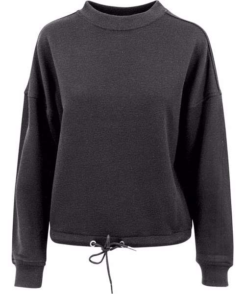 A crew neck with stylish details made of soft sweatshirt fabric, the women's oversized crew neck comes in the fashionable box shape that drapes in beautifully relaxed lines. The wide sleeves and the drawstring at the waist give the crew neck an even more casual look – even without print, this one is a fabulous choice. This item is manufactured in a FAMA Certified factory. FAMA stands for Facility and Merchandise Authorisation and is a high standard production certificate.