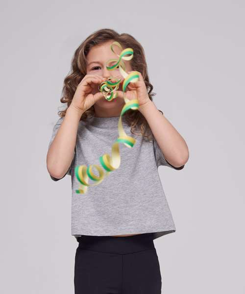 The girls cropped Jersey tee is a classic basic item with a trendy look. This shirt features a typical crew neck for a touch of nonchalance. While short sleeves make it ideal for warmer days, the shortened cut ensures that it will turn heads. The soft Jersey quality is ideal for silkscreen or flex printing.