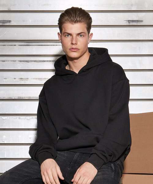 This ultra-heavy men’s hoodie combines the features of a classic sweater with cosy French terry. Complementing the look is its casual urban fit, so the hoodie is cut even more generously than an oversized fit and has extra-long sleeves. Adding further comfort and style are the kangaroo pocket, large hood and wide ribbed cuffs on the sleeves and hem. This hoodie can be personalised with printing or embroidery.