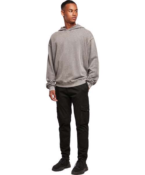 A men’s hoodie for a confident look! Washed with a modern acid wash, and with dropped shoulders, it strikes a sporty, casual appearance. The hood replaces drawstrings with a centrally placed dividing seam. In an oversized cut, and made from pure cotton, the hoodie is equipped with rib cuffs and hem. A casual and trendy companion for all activities, it can be personalised with printing or embroidery.