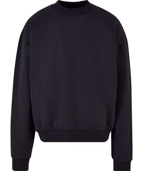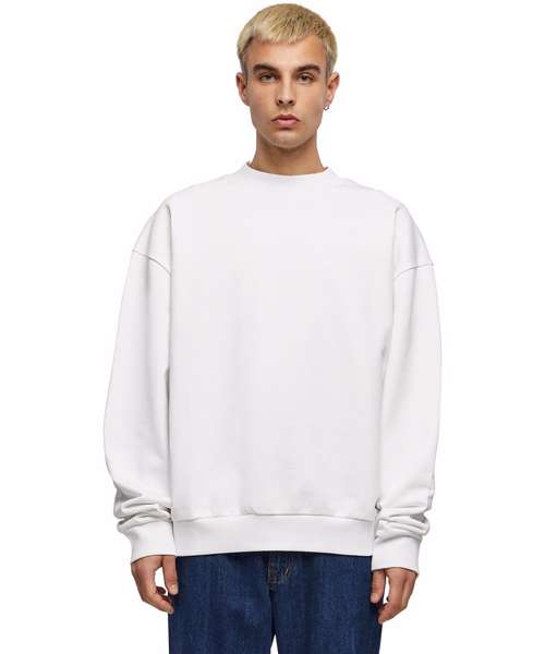 A basic all-rounder, made from heavy cotton, this men’s long sleeve sweatshirt presents a wide, urban fit with dropped shoulders. Styled with a wide ribbed collar and rib cuffs on the sleeves and hem, it can further be refined with screen or flex printing.
