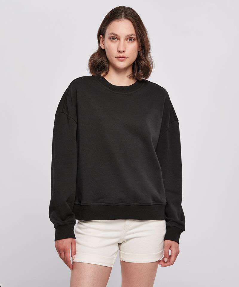 Designed as a comfy, oversize fit with dropped shoulders, this women’s long sleeve shirt is an instant classic. The used cotton and polyester fabric ensures a cosy wearing experience. Furthermore, the fabric is suitable for further refining with flock and screen printing or embroidery. The supple women’s sweater offers a ribbed crew neck and wide rib cuffs on sleeves and hem that complete its feminine style.