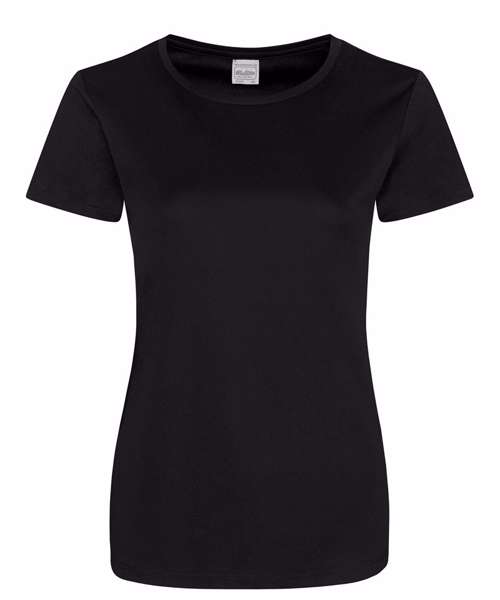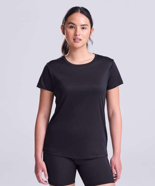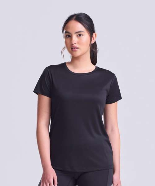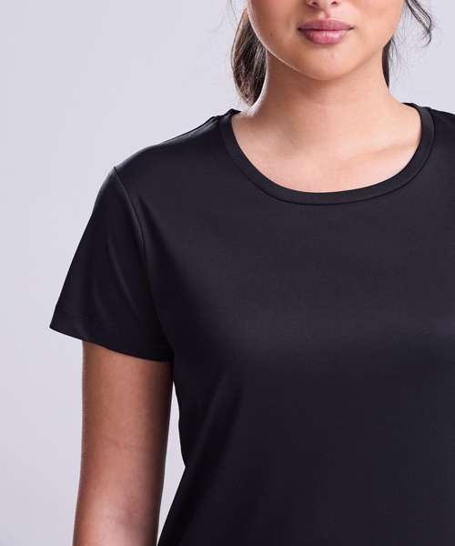 Classic crew neck T with girlie fit. Featuring high performance wicking fabric, crew neck and smooth fabric face.