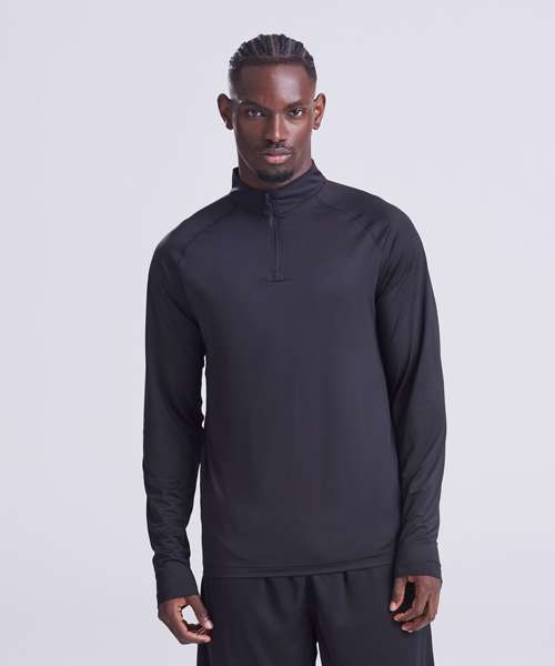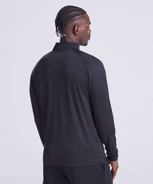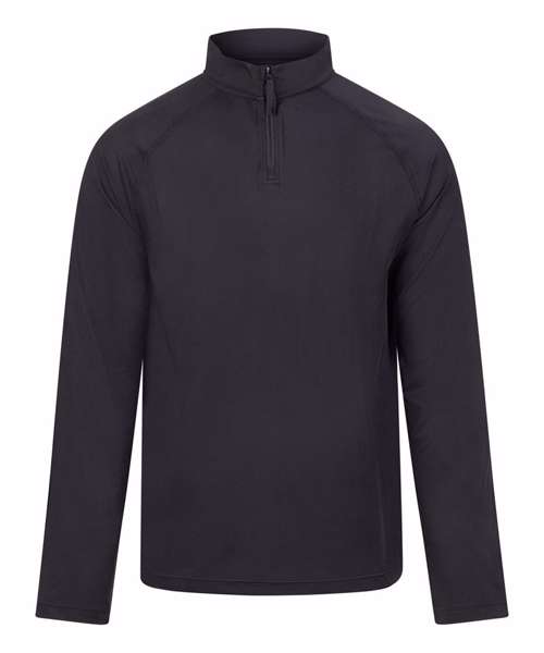 Raglan sleeves. Performance fabric. YKK 1/4-zip. Standard fit. Tear-away label. Quick-dry wicking fabric. Contains recycled polyester.