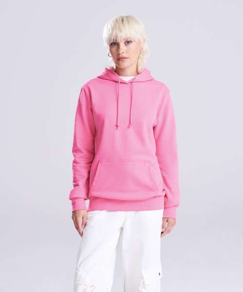 Twin-needle stitching detailing. Double fabric hood. Self coloured cords. Soft cotton faced fabric creates ideal printing surface. Ribbed main pocket edge detail for comfort. Simple tear out label makes it perfect for rebranding. Ribbed cuffs and hem. Kangaroo pouch pocket. Brushed inner fleece.