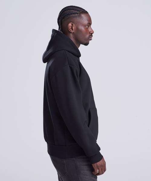 Oversized fit. Heavyweight. Three-panel, double-fabric hood. Kangaroo pouch pocket with inner phone pocket. No drawcords. Ribbed cuff and hem. Brushed inner fleece. Tear-away label. 100% cotton-faced hood.