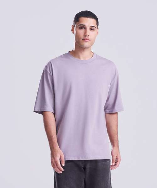 Oversized fit with side seams. Short sleeves. Ribbed crew neck style, with taped neck. Set-in sleeve. Size label only, for easy rebranding – colour-coded black for unisex. Combed ringspun cotton for ultra comfort. Surface excellent for print or embroidery. Twin-needle stitching detail on sleeves and bottom hem.