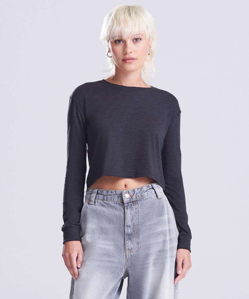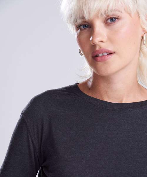 Easy-to-wear long sleeve cropped t-shirt, great for layering. Pair with jeans for an on-trend look. Soft to the touch, due to its fabric mix, and featuring a classic crew neckline. A wardrobe essential.