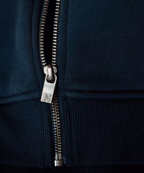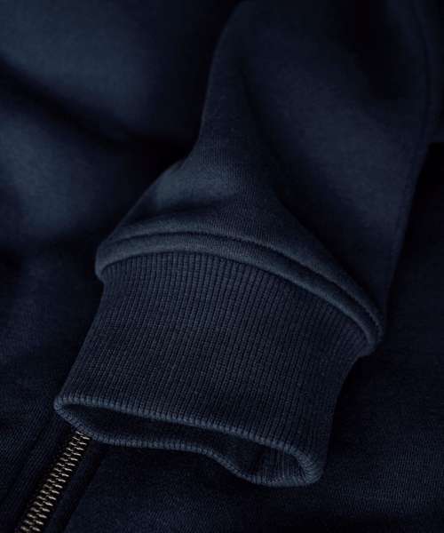 Two classic front pockets. Fashionable logo detailing. YKK metal main zipper. Brushed fleece lining with short shave treatment. Tone-in-tone Jersey tape around the zip tape. Combed long-stapled fibre organic cotton. Organic Content Standard Blended (OCS Certified, CU1038206).