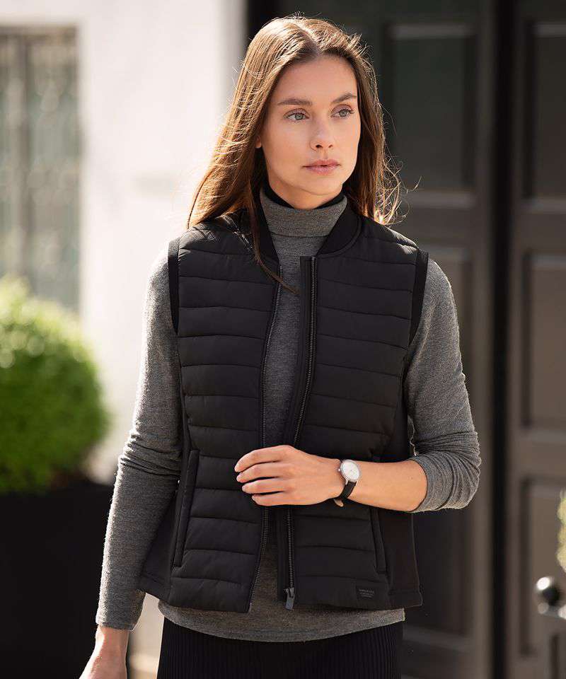 Vesper is a bodywarmer that combines premium design with our unparalleled outerwear expertise. This versatile hybrid garment is elegantly crafted for layering and transitional weather. Featuring a smoothly knitted, fleece-bonded back, alongside strategically-placed padded panels made from recycled polyester at the front, Vesper delivers essential warmth exactly where you need it most. This versatile design pairs seamlessly with both classic and modern garments – and this women’s version offers a feminine touch with a low-cut collar.