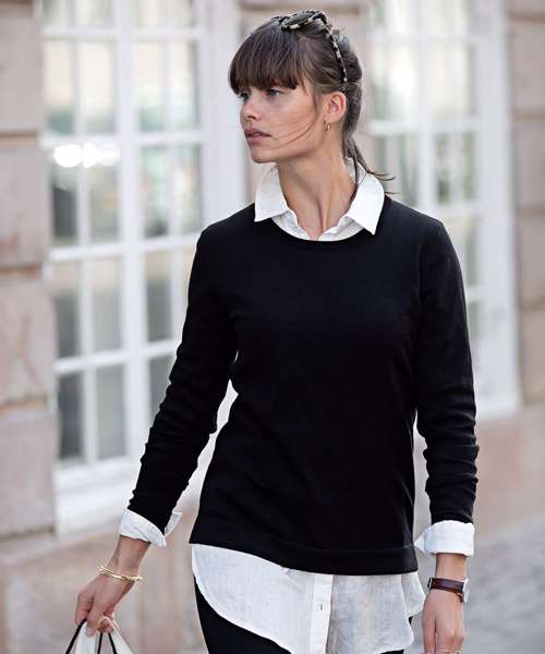 The elegant Brighton is perfect for either a casual or more formal look – wear it alone or over a shirt for a timeless trans-seasonal layer. This knit features a modern fit, a crew neckline and is made from fine-gauge premium cotton/nylon yarns for a more refined style, providing soft comfort and excellent shape retention. The tubular hem has a feminine slit to complete the look.