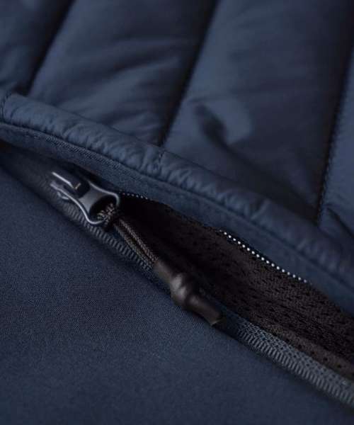Reverse main zip with metal logo puller. Inside adjustable drawstring. Sorona® Aura quilted padding. Recycled Fabric. Water-repellent finish (Bionic Finish® ECO). Outer fabric: Recycled fabric. Padding: Sorona® Aura insulation (made from 30% Bio-based fabric). Global Recycled Standard (GRS Certified, CU1038206).