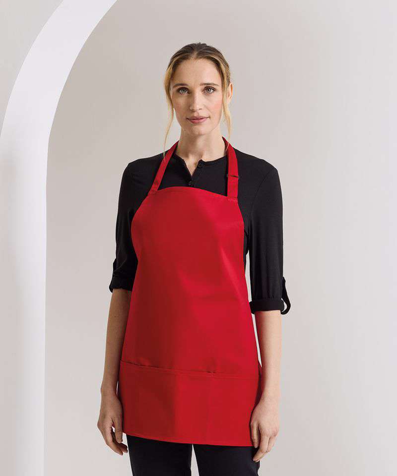 This 'Colours Collection' 2 in 1 apron allows the wearer choice and flexibility in how its worn. Initially a short bib apron, it doubles over and the neck ties button away to form a waist apron. Both styles have three functional pockets for carrying the tools of the trade.
