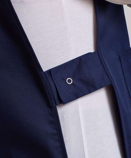 Side tabs with adjustable, stud-fastened closures. Colour-matched bias trim edges, large patch pocket. Crease resistant finish. Dimensions: Approx length 68cm.