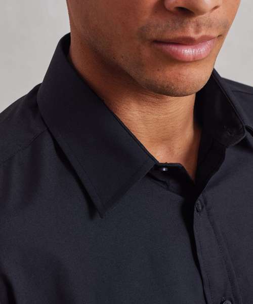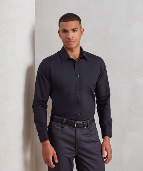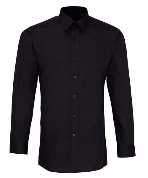 A men's fitted long sleeved Poplin shirt that offer a fashionable slim fit style for today's modern workplace. A stiff formal cut collar with double buttons to the cuff. Available in the best-selling colours from the Premier 'Colours Collection.'