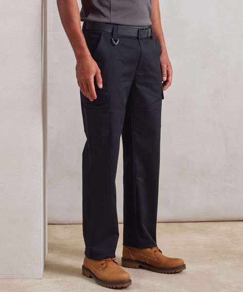 Hard-wearing and durable cargo trousers designed with Premier’s Stretchchecker fabric for ease of movement. Built with practicality in mind, it features multiple pockets and a useful D-ring for hanging essentials. These trousers are a popular choice, worn by those in manufacturing, construction and maintenance roles, due to their hard-wearing fabric. Unisex design, suitable for your entire workforce. Available in two colours, two leg lengths and in a wide range of sizes. Made with certified recycled polyester.