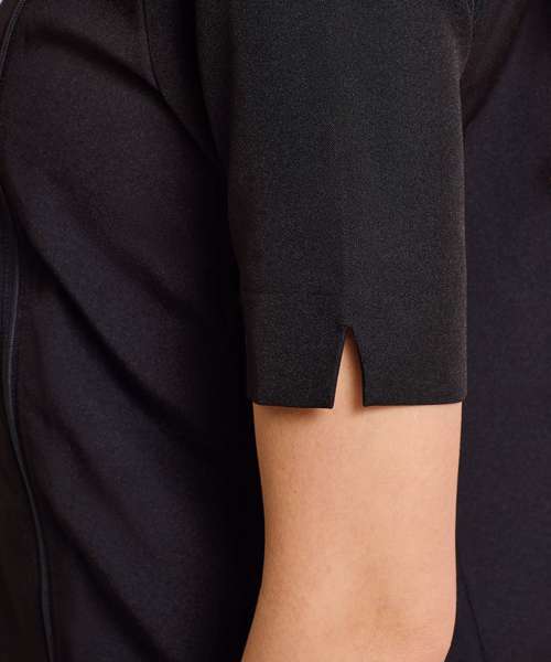 The 'Camellia' beauty and spa tunic has an understated elegance with a cross over contrast neckline and asymmetric zip front. The vented cuff on the short sleeves and the side vents ensure ease of movement whilst the princess seams with added topstitch detail create a very flattering fit.