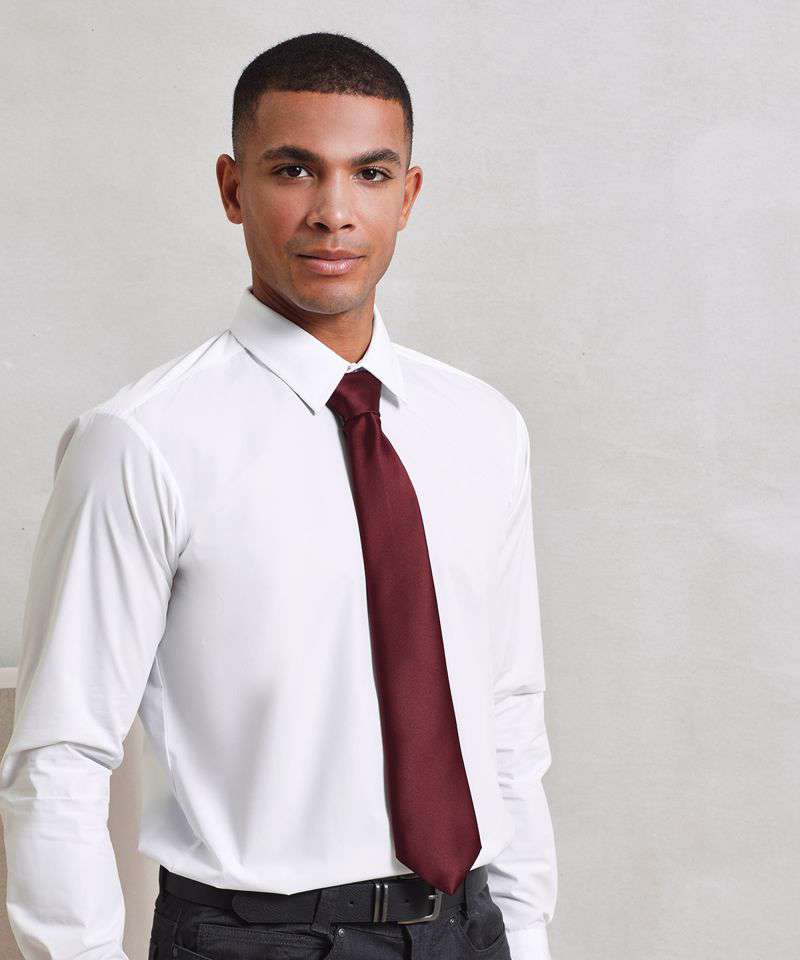Available in forty colours from the Premier 'Colours Collection', this business tie has a satin feel to it and has a blade of 8.5cm with a total length of 144cm. Mix and match with a plain Poplin shirt for a great look in the office.