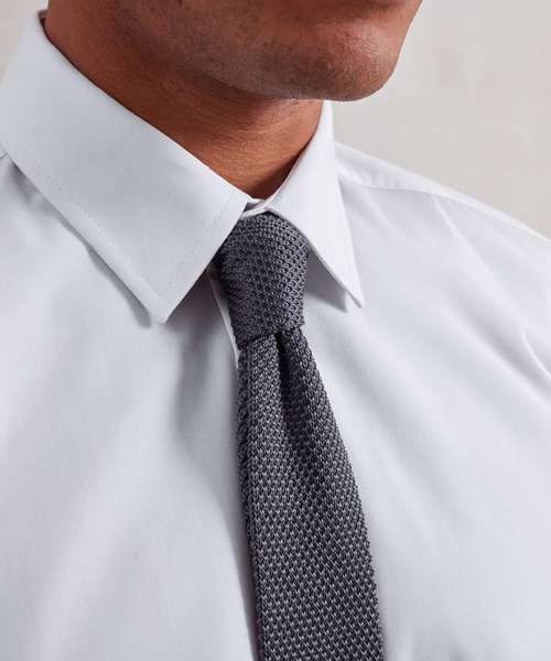 A super trendy tie suitable for work and play! Boasting an extra slim width of just 5cm with a squared off blade finished with a fine-knit stitching. This tie is knitted together with two coloured yarns for a slight contrast effect.