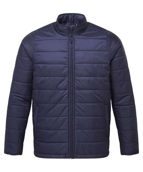Men’s padded zip-through jacket with horizontal stitching to form baffles, ensuring an even distribution of insulation. Covered zip with chin guard and zip guard to the inner. Styled with a cadet collar. Two welt jet zipped side pockets with a single open pocket to the inner for handy storage. Elasticated cuffs measuring one inch wide. Full embroidery access to the entire jacket through an internal zip in the lining. Lightweight and folds downs easily into its own stuff sack. Made with 100% certified recycled fabrics.