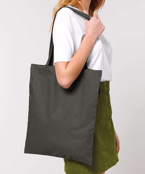 Top edge double-folded for strength and clean finish. Long handles with reinforced cross stitch.