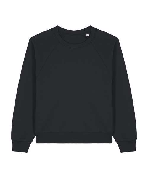 Premium women’s raglan crew neck sweatshirt in 100% organic cotton. 300gsm French terry. Excellent printability. Aligns with iconic mid-light styles.