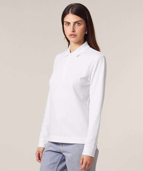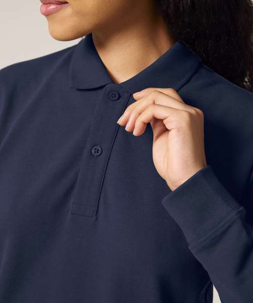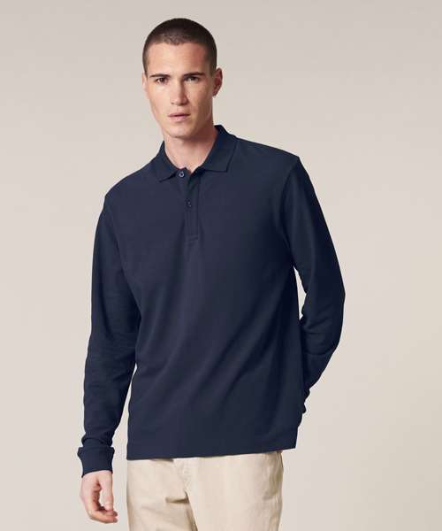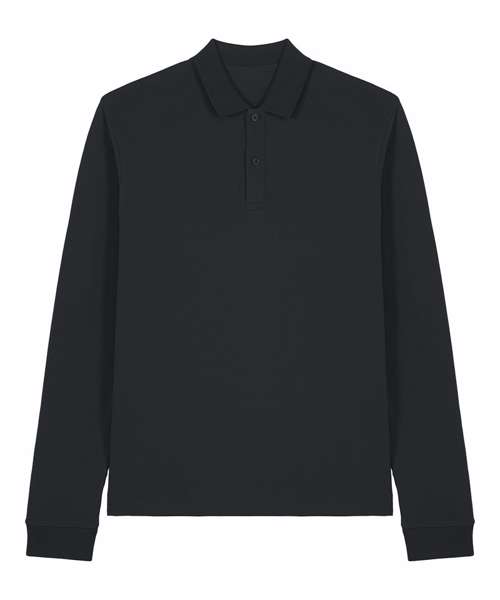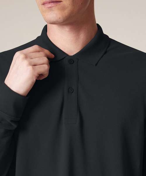 Premium, unisex, long-sleeve polo shirt in 100% organic cotton. Modern, medium fit, 240gsm. Pre-washed for shrink resistance. Excellent printability.