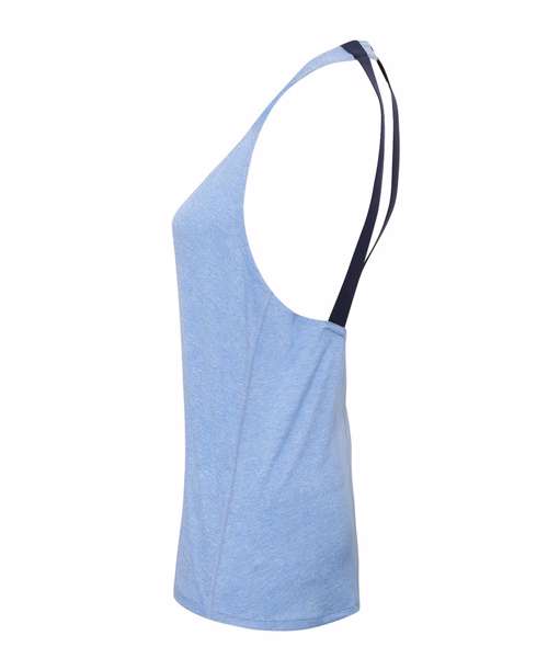 The women's TriDri® double strap back vest is engineered to help keep you cool and comfortable as you kick up your run. A strappy design lends a breezy, open feel, while the slim fit follows your body's shape closely to help keep you feeling focused and moving freely.