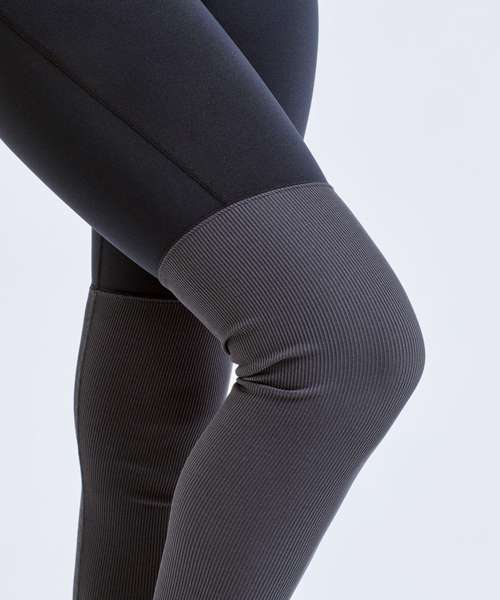Yoga leggings. Deep waistband. Upper part Jersey, lower part rib knit. Elasticated lower leg gives ruched look when worn. Lined panel between legs for smooth fit. We recommend using block out vinyl and inks.