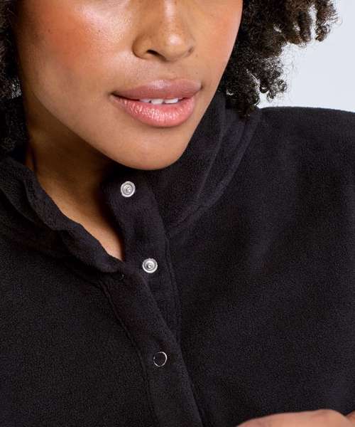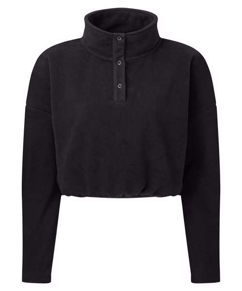 Cropped pull-over fleece with high neck. 1/4 neck popper fastenings to front. Elasticated waistband. We recommend using block out vinyl and inks.