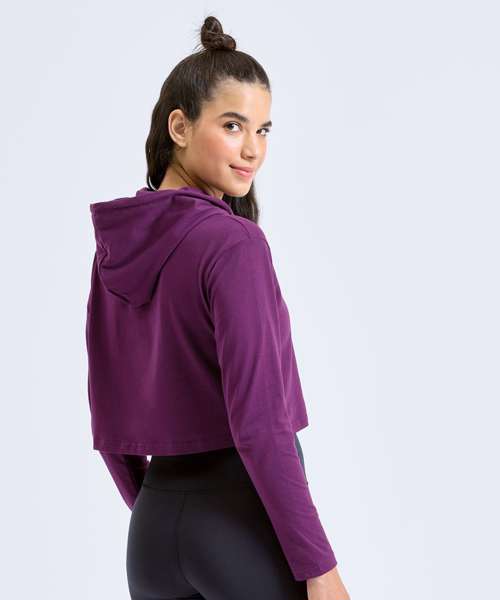 The perfect throw-over, whether you are just getting going or winding down. The women's TriDri® cropped hooded t-shirt has a boxy, cropped fit, it’s the pull-over you’ll always want in your gym bag.