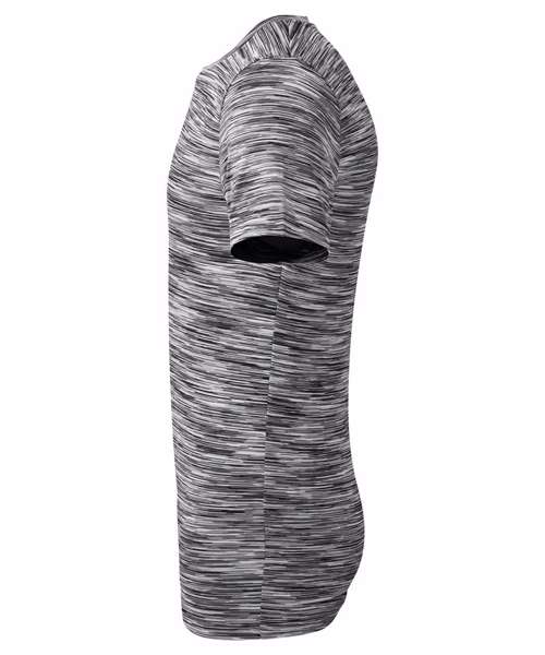 Wicking fabric. Stretch. Crew neck. Short sleeve. Lightweight. Twin-needle stitching on hem and arms. Slight stretch due to elastane blend. Space dyeing/yarn printing is a technique which gives yarn a unique, multicoloured effect. We recommend using block out vinyl and inks. UPF 40+.