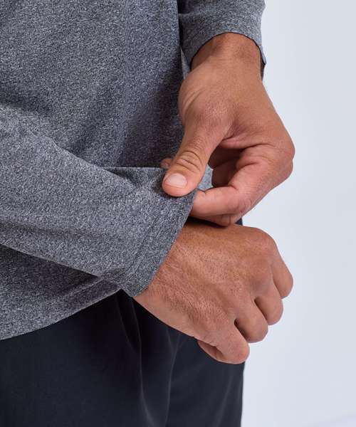 Contrast ¼ zip. Long sleeves. Stretch. Twin-needle stitching. Wicking fabric. We recommend using block out vinyl and inks. UPF 40+.