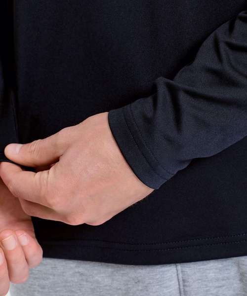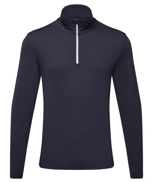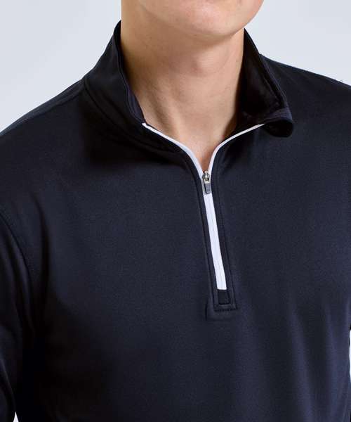 ¼ zip design. Long sleeves. Stretch. Recycled polyester. Wicking fabric. Brushed inner. We recommend using block out vinyl and inks.