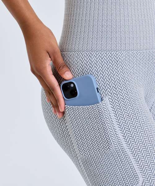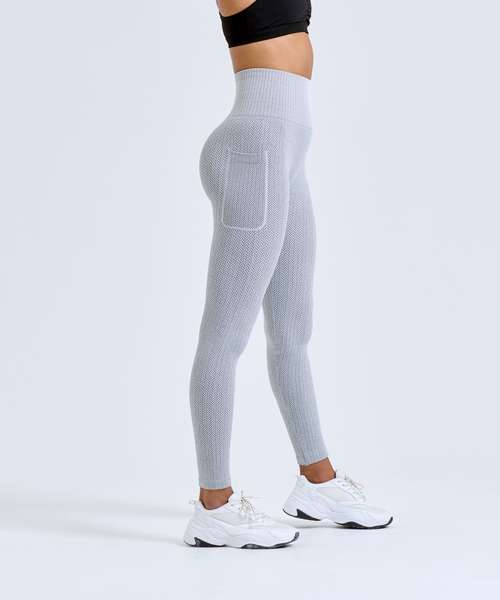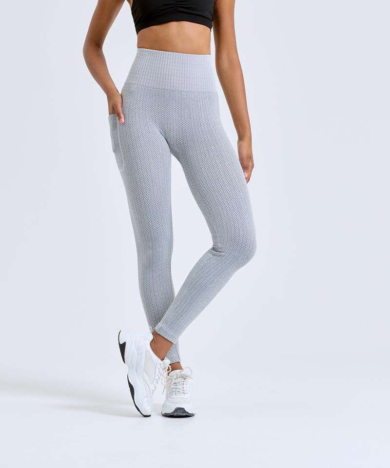 Knitted leggings with minimal seams. Full-length leggings. Soft-stretch fabric. Pocket to leg. Deep waistband. Herringbone pattern. We recommend using block out vinyl and inks.