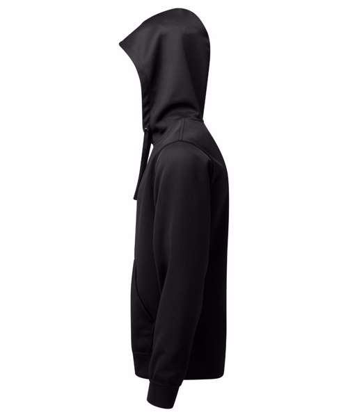 Unisex hooded style with kangaroo pocket. Drawstring cord fastenings to hood with chrome eyelets. Double-panelled hood. Cuffed sleeves and hem. Made with recycled polyester, Spun dyed technology. Spun dye melts colour pigments and recycled polyester together, creating coloured fibres using fewer chemicals, less water and less CO2. Spun dye fabric also improves the colour-fastness of garments. We recommend using block out vinyl and inks.