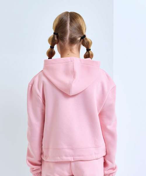 Oversized. Cropped. Relaxed fit. Hoodie. Dropped shoulders. Drawcord fastening at waist. Drawstring tie to waist which is sewn in at the back of the garment. We recommend using block out vinyl and inks. Recycled polyester.
