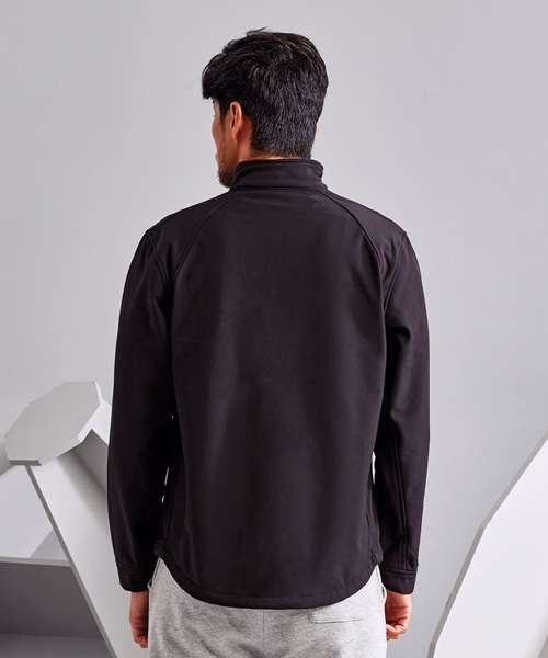 Reliable 3 layer bonded soft shell jacket. Zip through cadet collar with storm flap and chin guard. Sheds light wind and rain. Breathable. Interior smartphone friendly pocket. Storm cuffs. Shaped to fit. Inside zip closed pocket. Concealed inside zip for decoration access. Two front zippered pockets. Adjustable drawcord at hem. Windproof and water resistant. Easy re-label system. Product contains no branded neck label.* Removable Kimble or looped garment tags. Inner seam label holds important product information on one label with a second label containing brand information which can be cut-away.