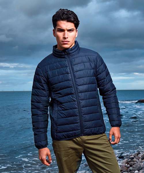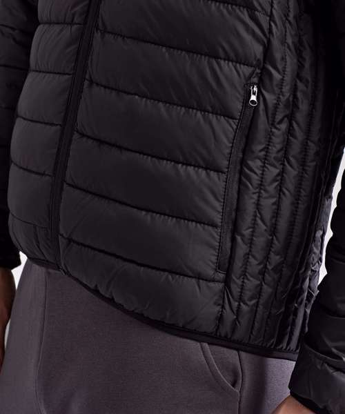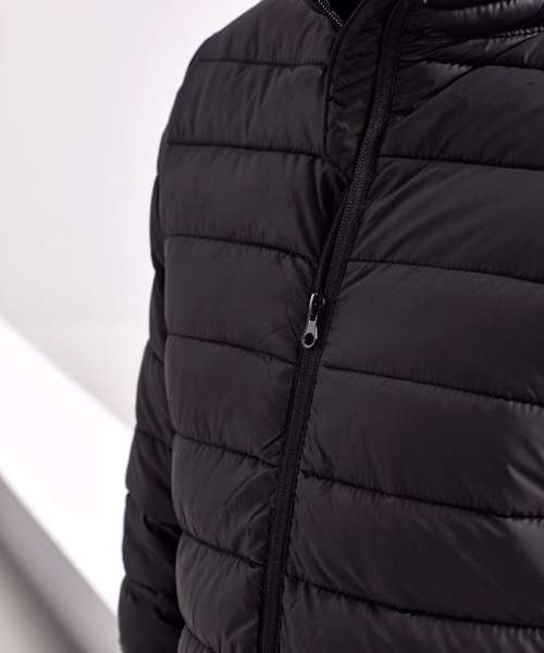 Reverse coil zip on centre front with signature zip pull. Horizontal sandwiched baffles on front and back body, with vertical baffle feature at the side seams. Internal binding on all seams. Concealed zip pockets with stretch binding around collar, cuffs and hem for added protection. Internal pockets. Internal storm flap with chin guard. Product contains no branded neck label.* Removable Kimble or looped garment tags. Inner seam label holds important product information on one label with a second label containing brand information which can be cut-away.