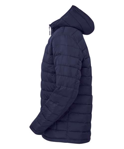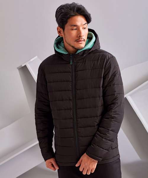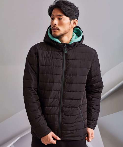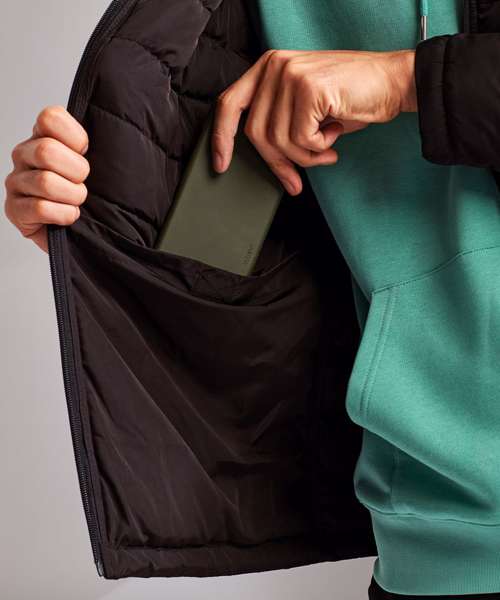 Reverse coil zip on centre front with recycled icon zip pull. Horizontal sandwiched narrow baffles on front and back body. Internal binding on all seams. Baffled three-panel hood, removable via zip attachment. Collar with chin guard. Lightweight polyester fill. Internal binding on all seams. Reverse coil zip pockets. Two inner pockets with hook and loop fastening. Product contains no branded neck label.* Removable Kimble or looped garment tags. Inner seam label holds important product information on one label with a second label containing brand information which can be cut-away.